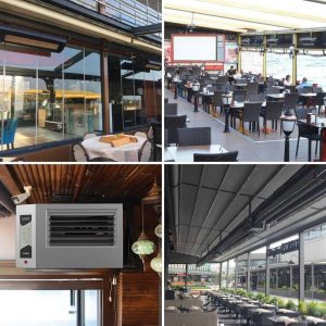 Genellikle dış mekanların ısıtılması konusunda en etkili çözüm olarak sunulan radyant ısıtıcılar çeşitli tip ve ebatlarda üretilmiş olup tavandan asılarak kullanımı sağlanmaktadır. Fabrika, cami gibi büyük alanlarını ısıtılmasında da çok etkili olmaktadır.
